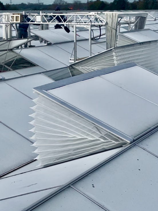 Our cassettes, equipped with high-quality folded insectmesh, are delivered on special trestles. Thanks to our innovative and safe mounting shuttles, we can transport large numbers of cassettes at the same time. Our mounting shuttles are suitable for Venlo greenhouses with bay widths of 3.20 to 5.00 metres. This ensures a minimum lead time and maximum efficiency during assembly on the greenhouse roof.
