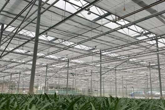 At Bromeliakwekerij 3B Fundus we have replaced the screen cloths with new Luxuous 1547 D FR screens. This is an energy-saving sun screen that ensures optimal light distribution, but also insulation so that the warmth is retained.