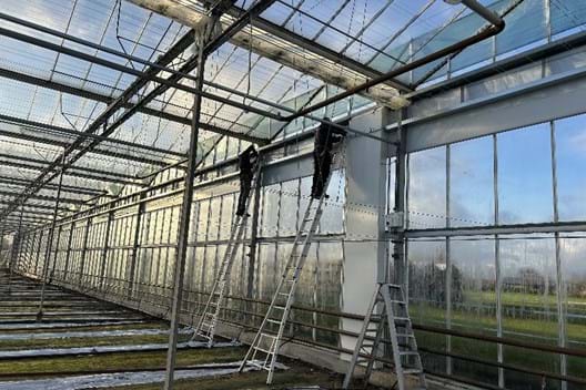 Sustainable zucchini! We were asked to install a second energy screen system on the lower screed at zucchini grower Doelman in Maasdijk. Thanks to clever planning, we were able to optimally utilize the temporarily empty greenhouse, so the installation was completed just in time for the new crop. This greenhouse is connected to geothermal energy, has roll-up screens for insulation (previously installed by us), and now has a double energy screen – sustainability at its finest!