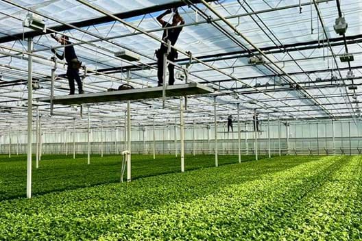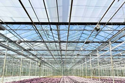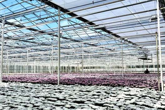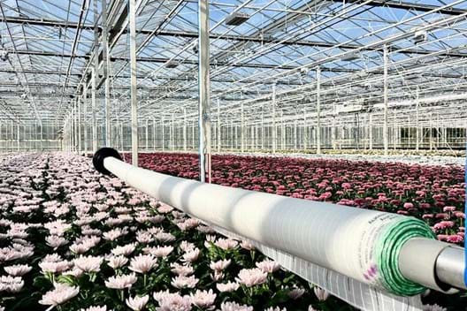 At Dukker Chrysanten we have installed a new push and pull installation over 3 ha with an energy cloth on top that also keeps out the brightest sun. This protects the beautiful flowers from burning and keeps the temperature in the greenhouse more stable, which saves energy.
