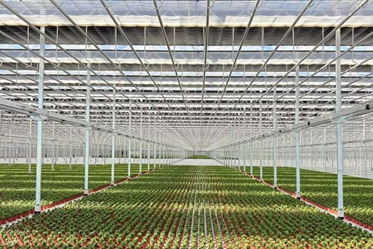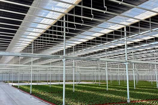 The new Emsflower greenhouse is up and running! The impressive new construction, spanning no less than 14 hectares, is nearly complete, a project we’re truly proud of. The entire facility has been equipped with roller facades and a dual installation featuring both an energy screen and a blackout screen. The greenhouse is ready to use, and that shows: the first rows of plants are already neatly in place.