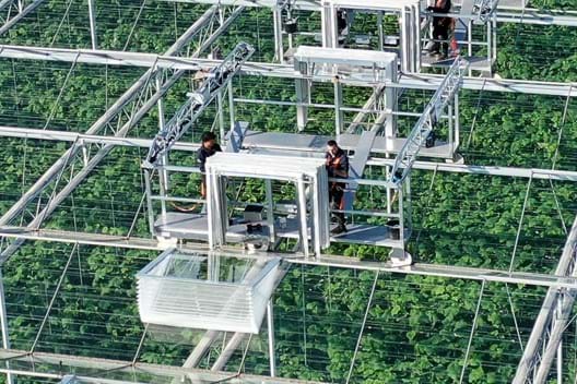 The installation itself? This is done entirely according to the latest technology with our insect screen shuttles. This allows us to efficiently install the screen from outside, without disrupting the cultivation process. With multiple shuttles in use, we can work even more efficiently and complete the project very quickly, so that the cucumbers are optimally protected against insects from outside.