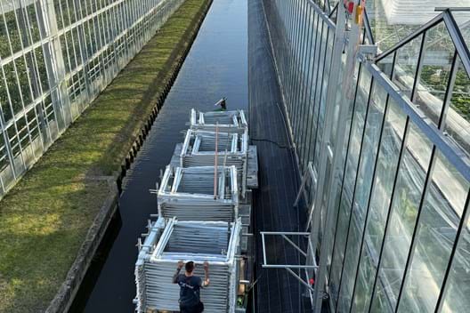 From boat to shuttle: innovation in action! At cucumber grower Kas.Ko, we bring together the best of the past and present. For the installation of insect screens from mesh producer Ventiguard, the cassettes were traditionally transported by barge, an age-old technique that used to be widely used in the Westland.