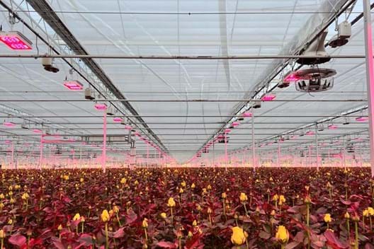 Marjoland chose for a second energy screen in a 5-hectare section! In combination with the LED lighting, the Luxuous 1147 FR energy screen from Svensson is a real must to keep as much heat in the greenhouse as possible. Due to the limited space, we have modified the greenhouse slightly to be able to add this screen to the existing light reduction installations. This way, the roses are nice and warm again!