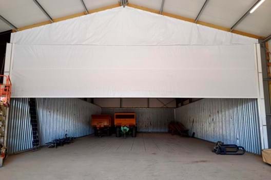 Our client, Mr. Meijer from Emmeloord, asked us if it was possible to darken a potato storage area and make it as energy-tight as possible. A different challenge, but no less challenging due to the span and height. A high passageway is essential for the dump trucks that deliver the potatoes. The result is impressive! The potatoes are neatly stored after the harvest this autumn.