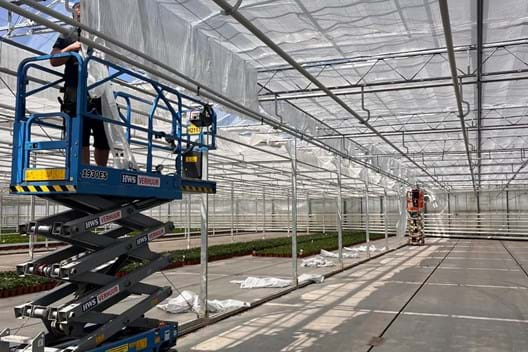 Peeters Potplanten from Breda has expanded its cuttings department! It was the perfect opportunity to renovate and immediately expand the double screen systems, so the new department was also equipped with an energy-saving sunshade and a transparent energy screen. This combination allows them to maximize energy savings in any weather! Finally, we also installed a fixed facade with ridge screens and a flexible twin-roller facade, allowing the departments to be controlled separately for the perfect light level.