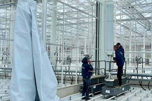 The new construction of Rijk Zwaan in Dinteloord has been completed! Our men have now installed a triple screen system with the golden combination of an energy screen, a sun screen and a light reduction cloth. In addition, the facades are equipped with twin roller facades to be able to operate the different departments separately. The finishing touches have been put on and the greenhouse has now been officially put into use for the breeding of delicious soft fruit!