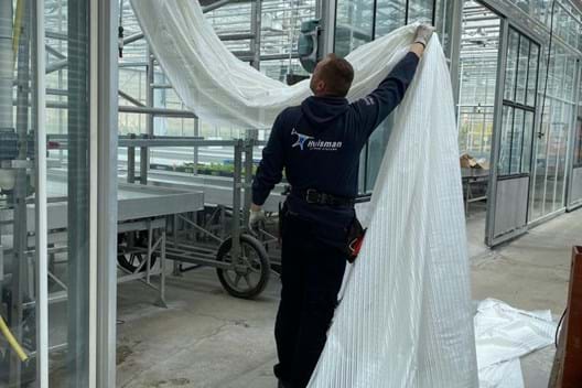 At the Rijk Zwaan location in Fijnaart, we were able to equip all departments with a second screen, which was installed on the same wire bed as the existing screen installation. This involved 28 departments varying in size from 57m2 to 700m2, so sometimes it was a bit of a puzzle with the space, but we succeeded!