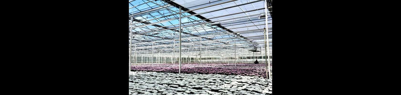 Bei Dukker Chrysanten haben wir auf mehr als 3 Hektar eine neue Push-and-Pull-Anlage mit einem Energieschirm installiert, der selbst die hellste Sonne abhält. Auf diese Weise werden die schönen Blumen vor dem Verbrennen geschützt und die Temperatur im Gewächshaus bleibt stabiler, was Energie spart.