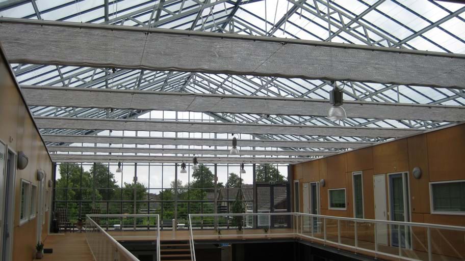 Warum sollte der Einsatz einer Abschirmanlage auf den Gewächshausgartenbau beschränkt sein? Die Funktionen einer Abschirmung - wie die Klimaregulierung oder die Begrenzung der Sonneneinstrahlung - sind auch für Nutzbauten nützlich. Nicht jeder Anbieter verfügt über die gleiche Erfahrung in der Zusammenarbeit mit Kunden aus dem Nutzbau. Fragen Sie also Huisman. Außerdem machen wir das Arbeiten, Verweilen, Studieren oder Entspannen angenehmer, indem wir die richtige Abschirmung für eine Vielzahl von Gebäuden installieren.