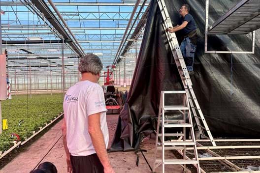 At Samada Flowers, cultivation never stops and the greenhouse is always filled with beautiful chrysanthemums. That means there’s never a moment when all partition walls can be replaced at once. Therefore, we work step by step, following the rhythm of the crop. As soon as a flower bed is harvested, we replace the partition walls and then the new cuttings can go straight back into the greenhouse. The coming period we’ll be on site regularly, delivering clean, new partition walls without delaying the growing.
