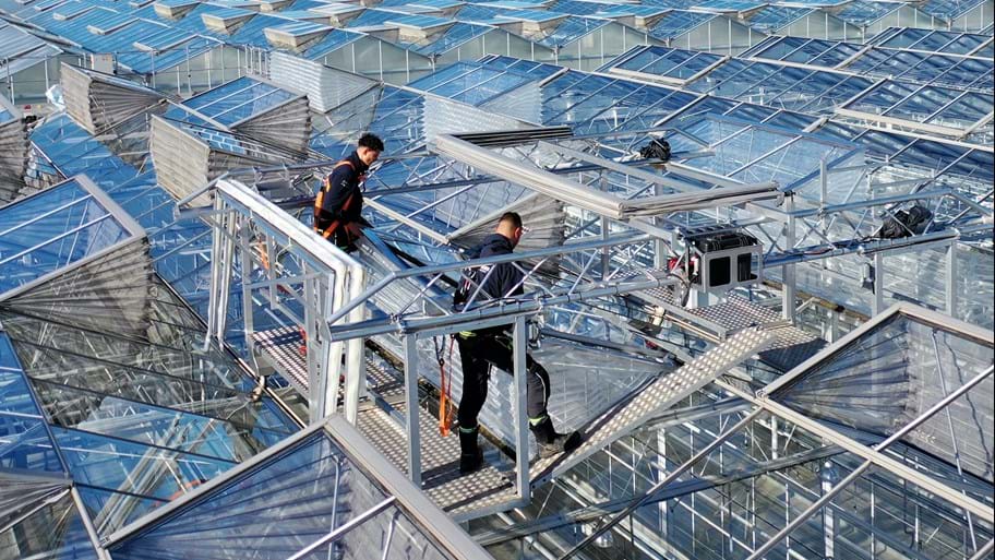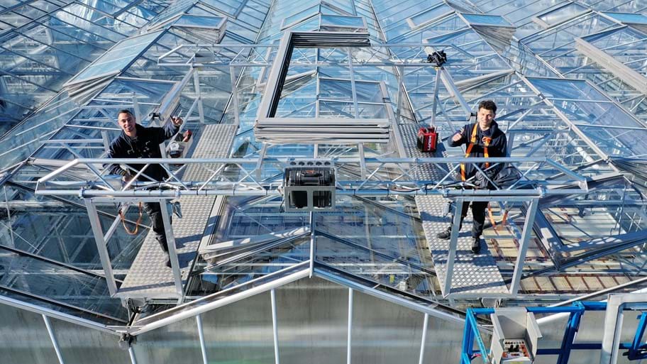 De gaasshuttles van Huisman Screen Systems rijden over het kasdek heen om van buitenaf het gaas te monteren. Een aantal jaren geleden besloten ze dat het monteren van gaas van buitenaf moest gaan gebeuren. Er zijn daar veel voordelen van te benoemen. Zo is het veiliger en prettiger werken, wordt het teeltproces niet verstoord en werkt het efficiënter.