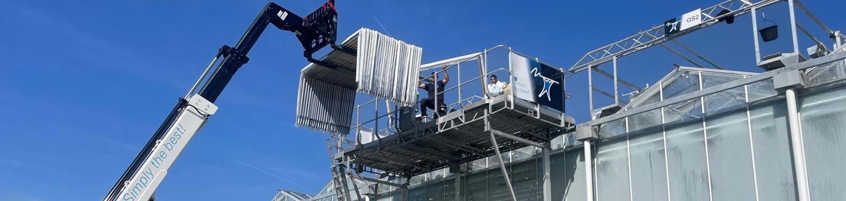 Gerberakwekerij Esmeralda in Rijnsburg wordt volledig voorzien van insectengaas! Een leuke uitdaging, want dit bedrijf bestaat uit twee kastypen: de venlokassen met afzonderlijke luchtramen en de breedkapkassen met doorlopende nokluchtingen. Maar liefst drie teams én drie shuttles zijn hier tegelijkertijd bezig om alle ramen te voorzien van het lamellen gaassysteem en daarmee de 5 ha. kas in de toekomst volledig insectenvrij te maken!