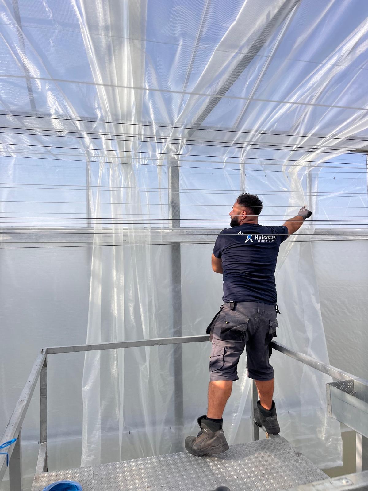 In 2024 hebben we de eerste afdeling van 5 hectare mogen voorzien van een tweede energiescherm. Dit beviel zo goed dat we in 2025 nog eens ruim 5 hectare hiermee mochten uitrusten. Als trekdraad is hier gekozen voor de Huisman Dynamic trekdraad, speciaal ontwikkeld voor langere levensduur bij veel schermbewegingen. Tot slot hebben we de bestaande energiescherminstallaties gerenoveerd én de rolgevels vernieuwd.